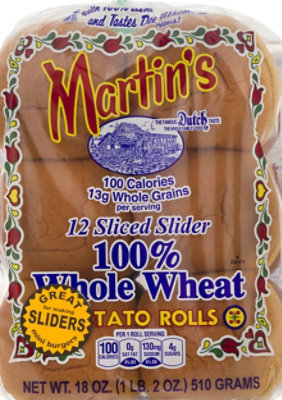 Martins 100 Percent Whole Wheat Potato Rolls 18 Oz Acme Markets
